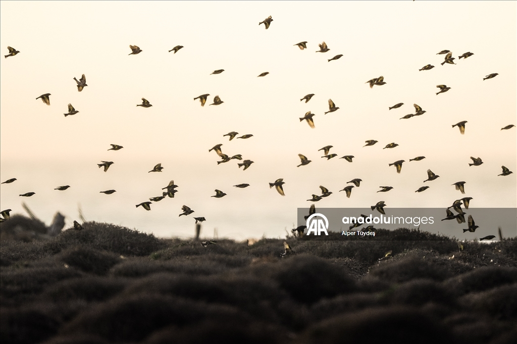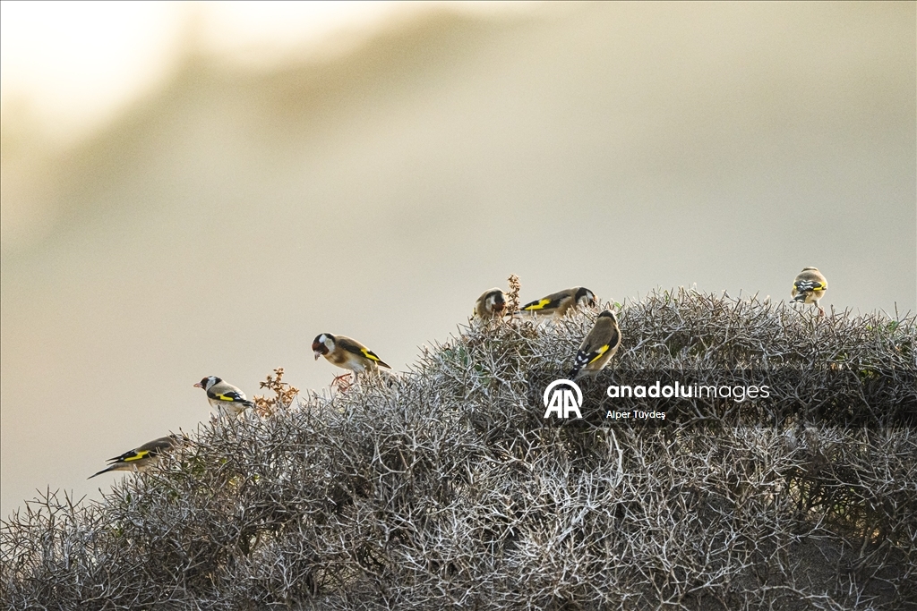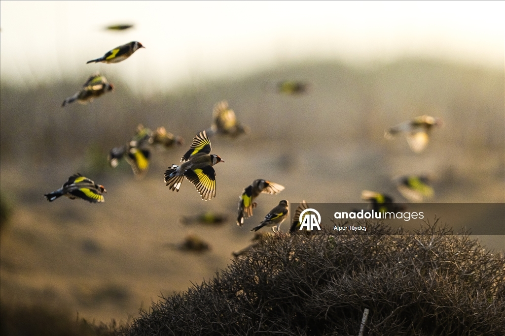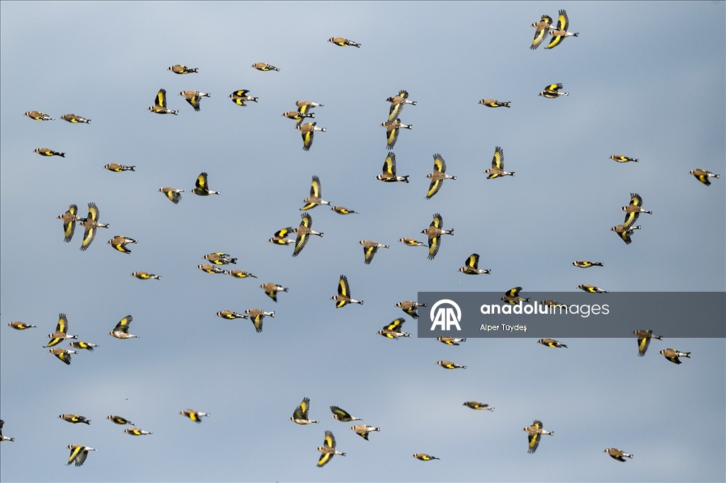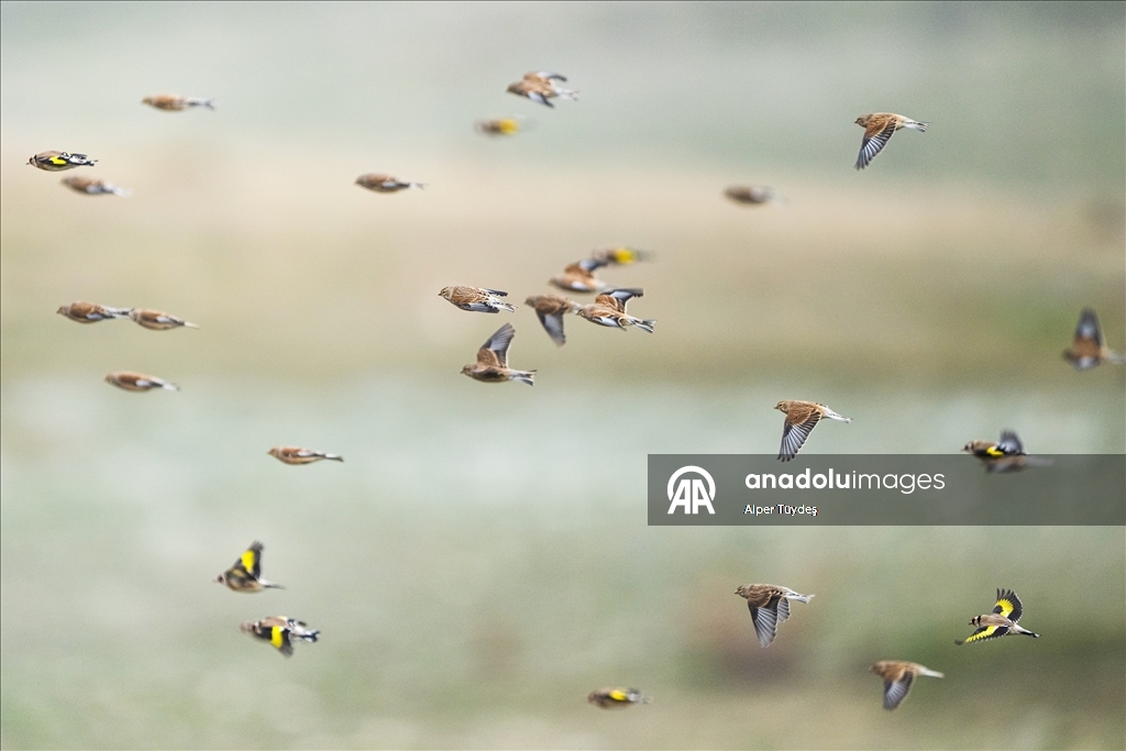 Küçük ötücü kuşlar, özellikle uçuş sırasında kanatlarındaki belirgin sarı renklerle güzel görüntü sunuyor.