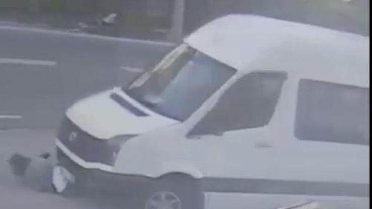 Servis minibüsünün kadına çarpıp, sürüklediği kaza kamerada