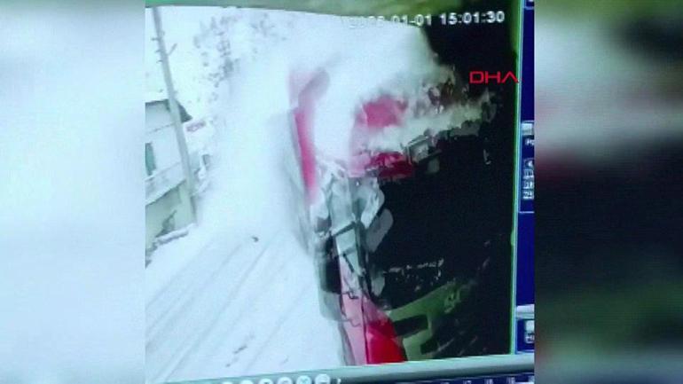 İhbar üzerine olay yerine polis ekipleri sevk edildi. TIR'ın eve çarptığı anlar çevredeki bir iş yerinin güvenlik kamerasına yansıdı. Görüntülerde; TIR’ın önce bahçe duvarına, ardından hızla evin duvarına çarptığı anlar yer aldı.