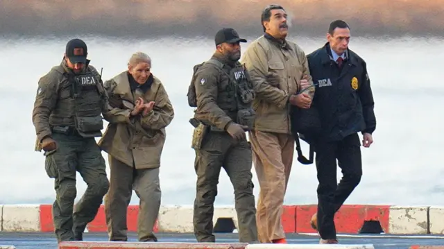 Fotoğraf altı yazısı, ABD Venezuela'ya yönelik askeri hareket düzenledi ve Maduro'yu ülkeye getirdi.