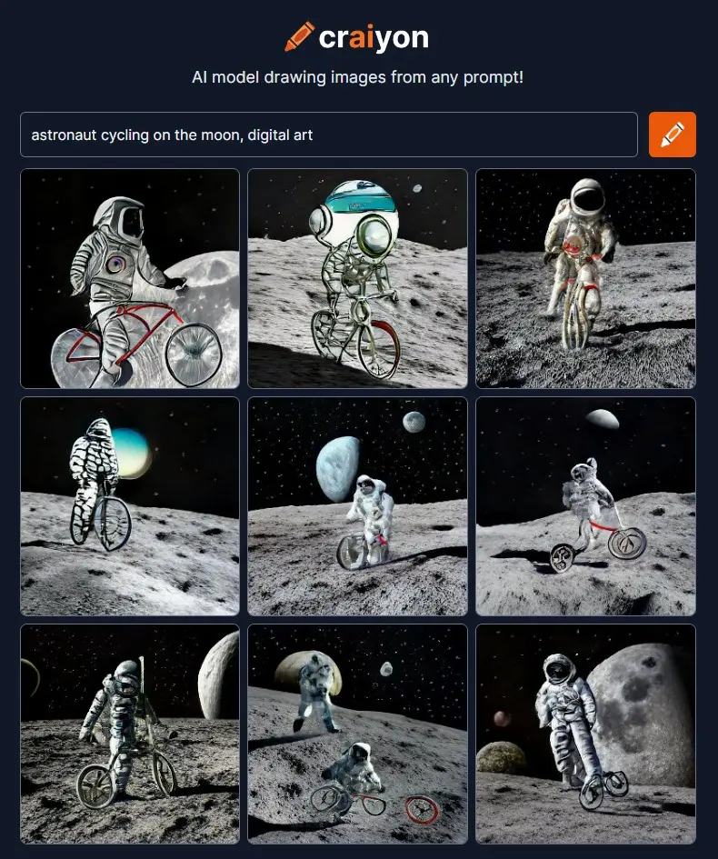 Diyelim ki yukarıdaki görselde olduğu gibi bir resim hayal ettiniz. Bir astronot ayda bisiklete biniyor olsun ve bu izlenim bir dijital sanat tarzında resime dönüştürülecek olsun, böyle bir konu hayal ettiğinizde bunu yapay zekaya algoritma diline uygun bir şekilde anlatmanız görseli üretmeniz için yeterli olacaktır. Algoritma diline uygun olan; görselleştirilmek istenenin düz ifade ve tamamen açıklanmış bir şekilde betimlenmesidir. Basit ve adım adım yazılan her kelime algoritma tarafından bir önceki kelime ile bağlantı kurularak diyagrama dönüştürülür. DALL-E girilen metin ile yalnızca tek bir görsel üretmez. Yani yapay zekaya kelimeleri veririz ve o bizim için uygun cümle olasılıklarını analiz eder. Yukarıdaki görselde de olduğu gibi yalnızca bir resim değil 9 farklı resim dolayısıyla 9 farklı cümle oluşturmaktadır.