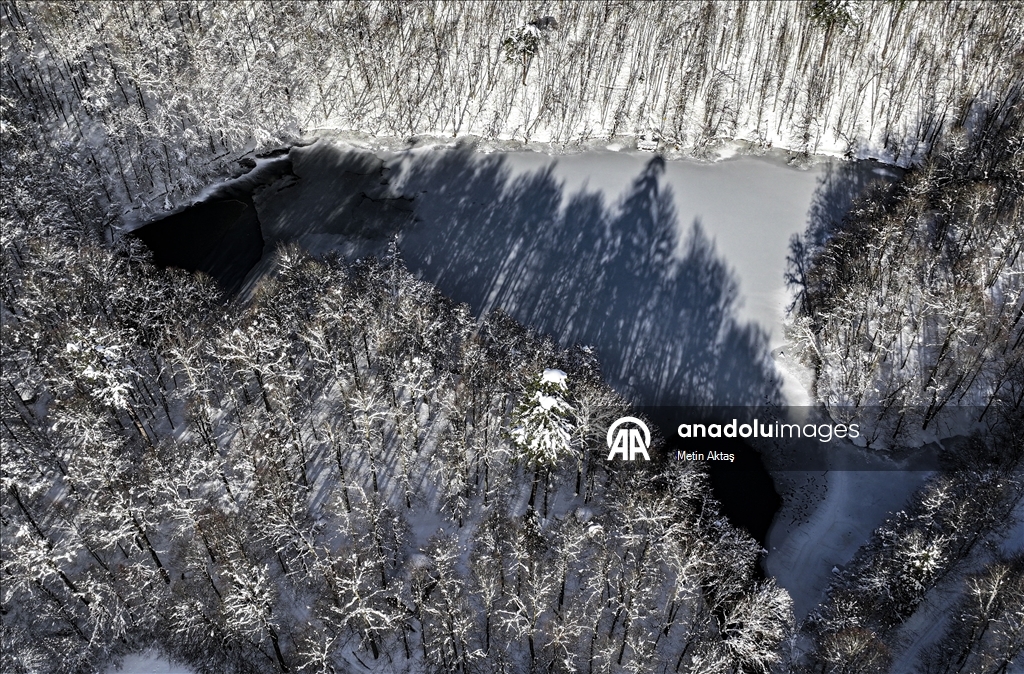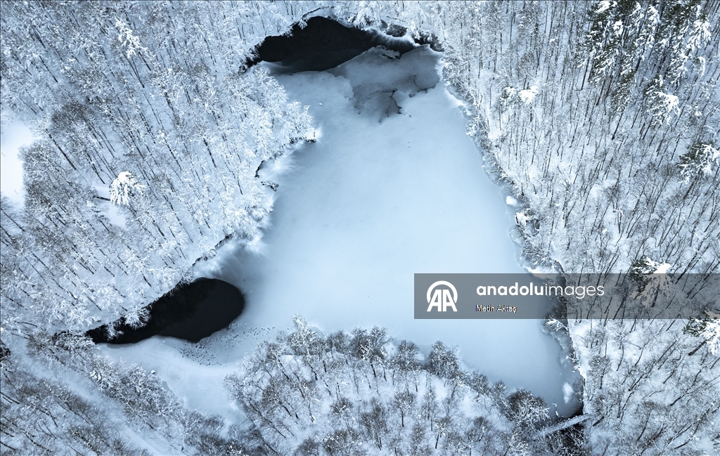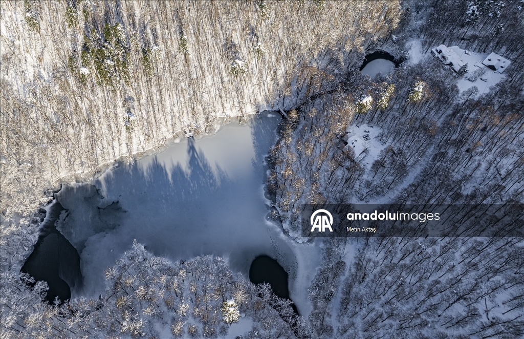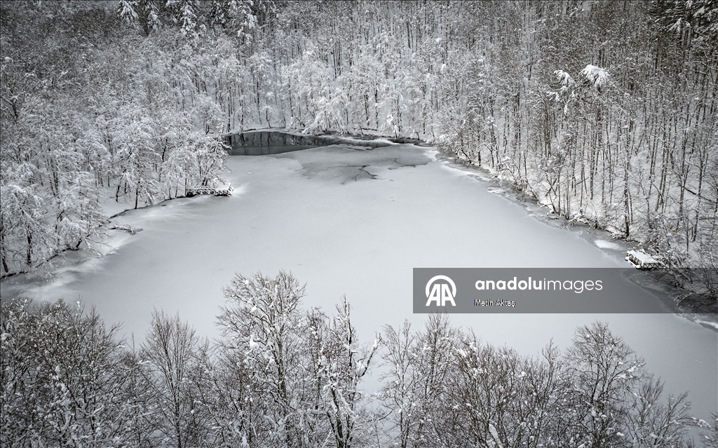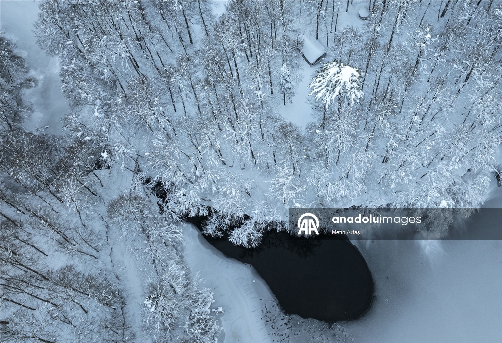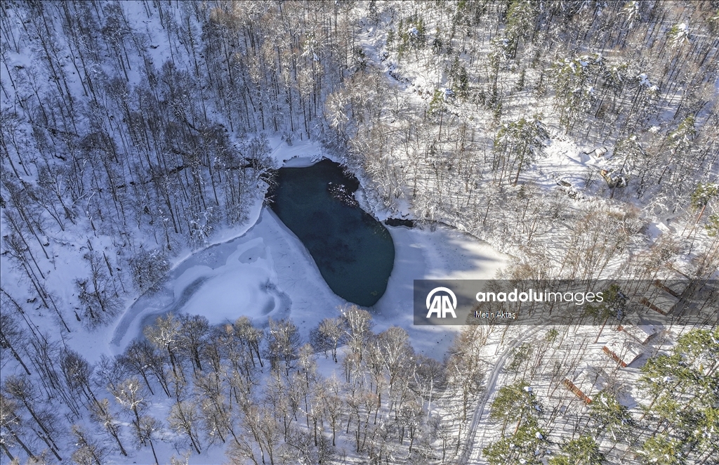 Son yılların en yoğun kar yağışını alan Bolu'da Yedigöller Milli Parkı da yağan karın ardından beyaza büründü.