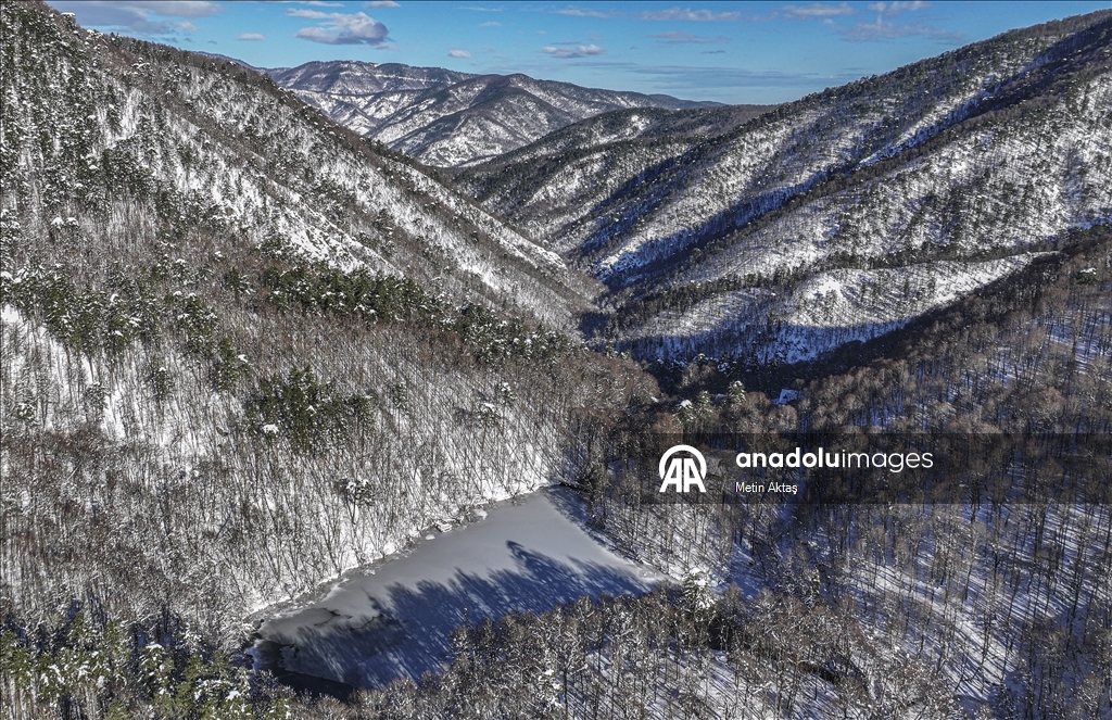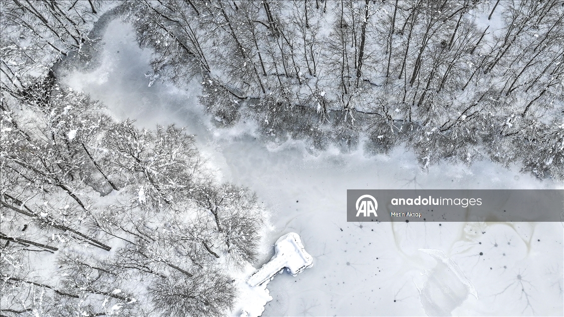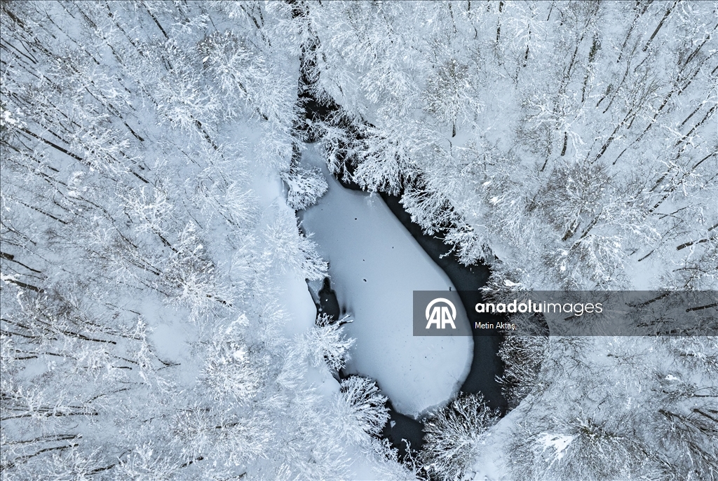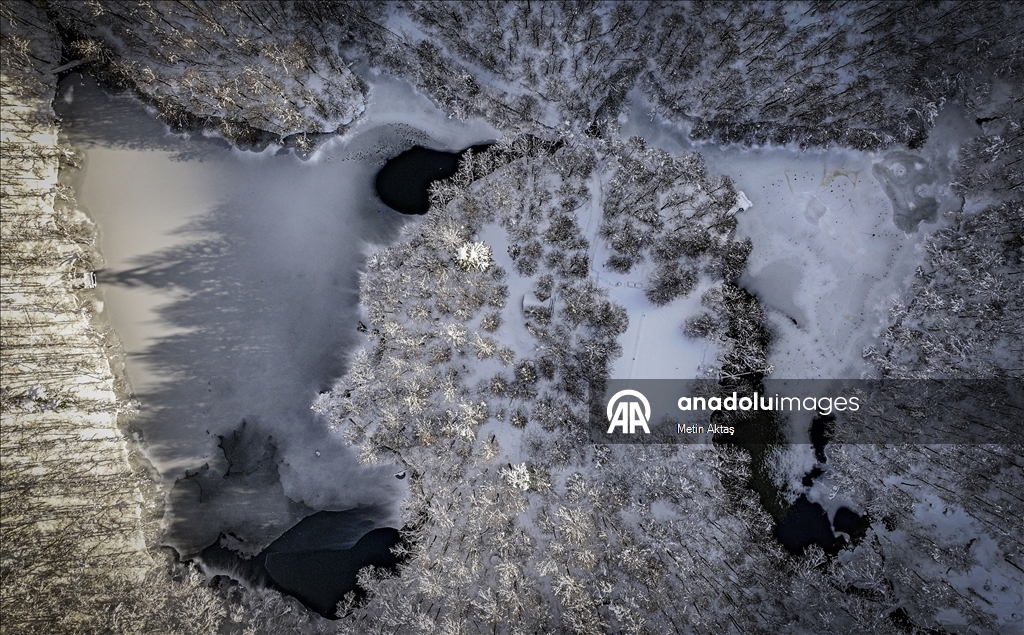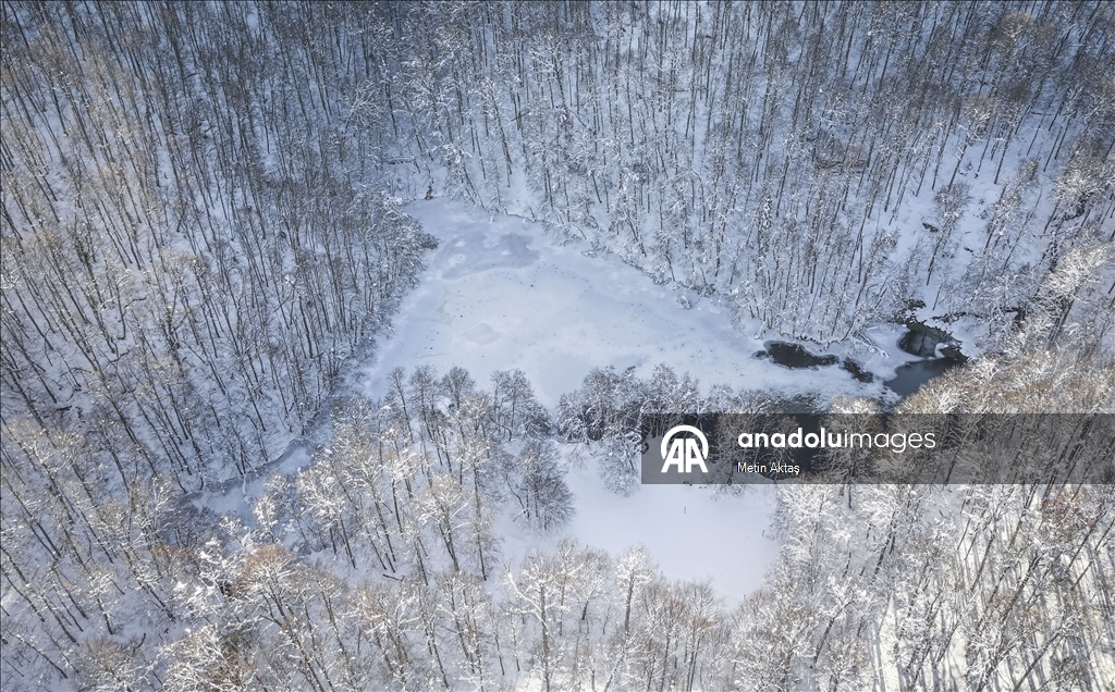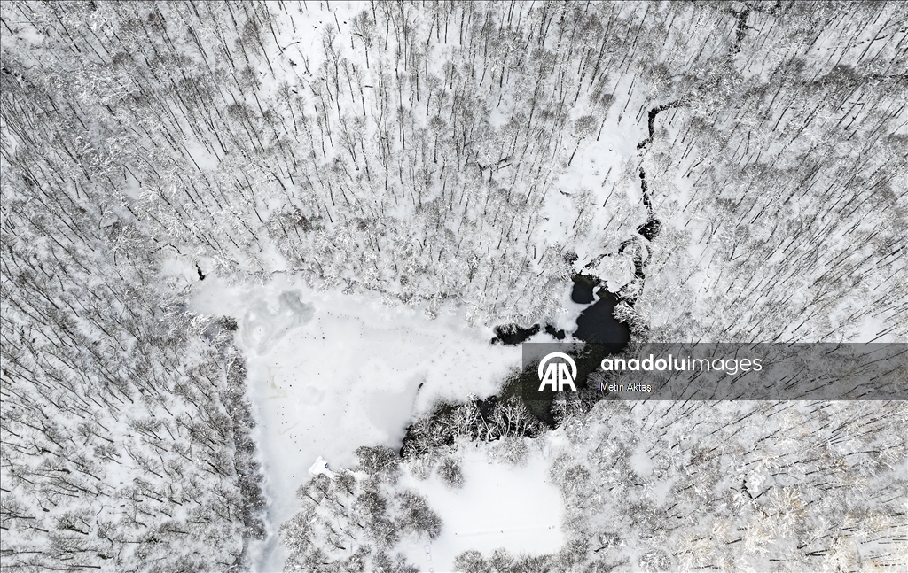 Son yılların en yoğun kar yağışını alan Bolu'da Yedigöller Milli Parkı da yağan karın ardından beyaza büründü.