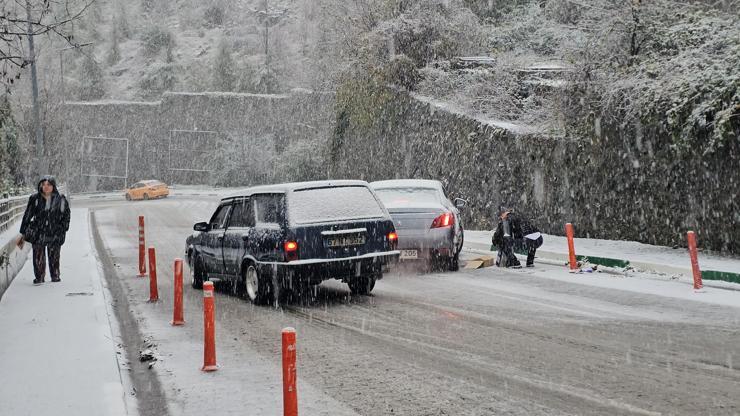 Zonguldak'ta kar yağışı; hastane yolunda araçlar kaydı